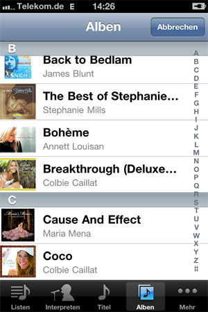 Unser iPhone ist ja immer noch angeschlossen und man wählt es wieder aus. Oben (Mitte) wird nun "