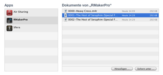 DATEIFREIGABE sollten die Apps aufgeführt sein, die ein Übertragen von Dateien erlauben.