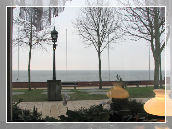 Zum Burzeltag gabs heute ein Sektfrühstück im Cafe Steigleder an der Strandpromenade. Ich hab mich gleich schon beim ersten Besuch in das kleine Cafe verliebt, was unbedingt an der Liebenswürdigkeit der Besitzerin (?) und am schönen Ausblick liegt. Natürlich weiß ich nicht, wie es mit der Gastfreundschaft in Trubelzeiten aussieht. Jetzt im Januar, wenn es so herrlich ruhig ist, da wird gekümmert...