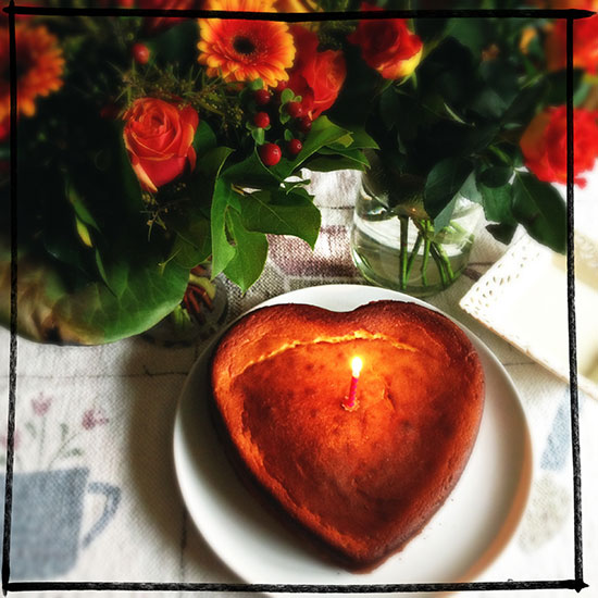 Heute morgen wurde ich von/mit einem leuchtenden Käsekuchen-Herz und Blümchen begrüsst :-) - über das Herzal hab ich mich mächtig gefreut :-)