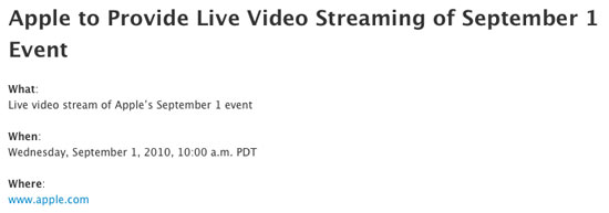 Die für heute geplante Keynote wird als Live Video Streaming zu sehen sein. Apple-Cheffe Steve Jobs wird heute Abend ab 19 Uhr (deutscher Zeit) Neues zu berichten haben und dieses Mal dürfen wir es SEHEN :-) Bisher haben wir die Keynotes per Berichterstattung in Textform verfolgt. Es gab Liveticker, die die Neugikeiten rund um Apple überbrachten. Heute werden wir per Live-Streaming dabei sein können.