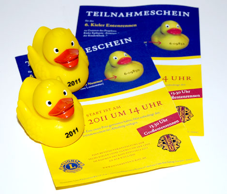 rundumkiel unterstützt das 6. Kieler Entenrennen zu Gunsten "Kieler Epilepsie–Zentrum für Kinder". Dieses “Wettrennen” mit durchnummerierten gelben Badeenten, findet am 08.05.2011 im Rahmen des KIDS Festivals um Punkt 13 Uhr mitten in Kiel, in der Kieler Förde, statt. Dort werden die Enten zu Wasser gelassen.