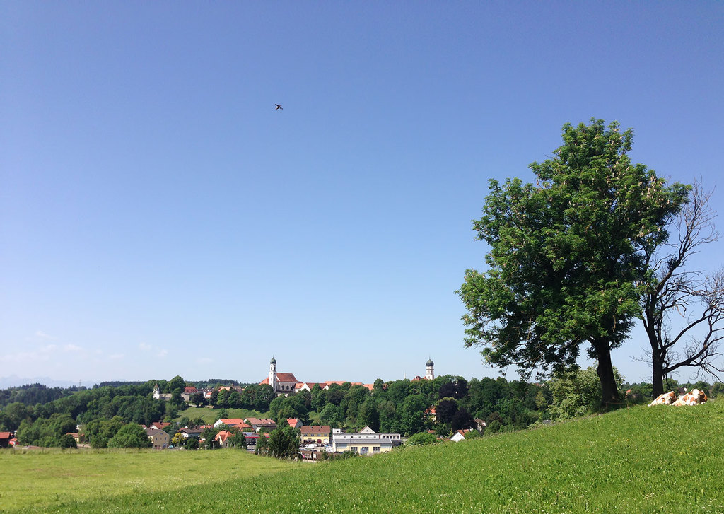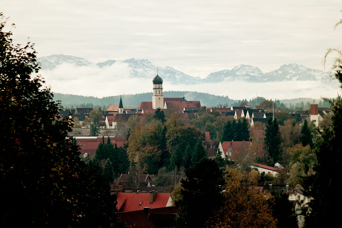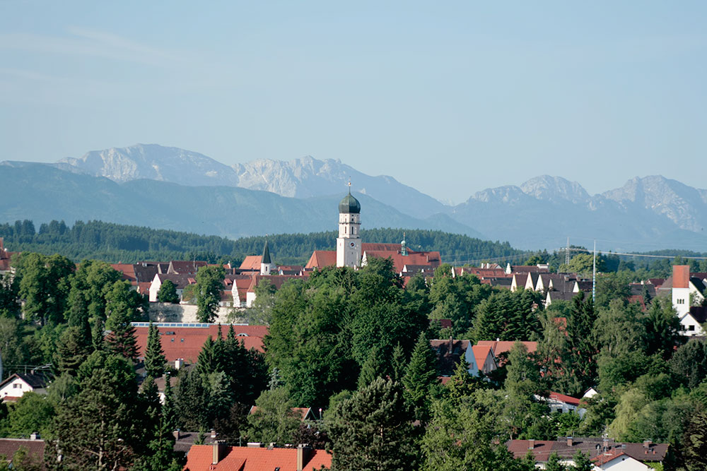 In der früheren Zeit wurde die Stadt von dem Fluss Lech umflossen und liegt nahe der ehemaligen Römerstrasse nach Augsburg, der "Via Claudia Augusta (47 nach Chr.)