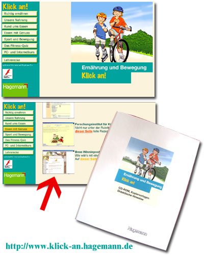 Vor einiger Zeit erhielt ich eine Anfrage vom Hagemann-Verlag, ob sie die Rezepteecke auf Beas-Winniepooh in der neuen Klick-an-CD zum Thema "Ernährung&Bewegung" anbieten dürfen. Die Seiten werden so aufbereitet, dass offline gesurft werden kann und nur das zu erreichen ist, was zum Thema passt.
