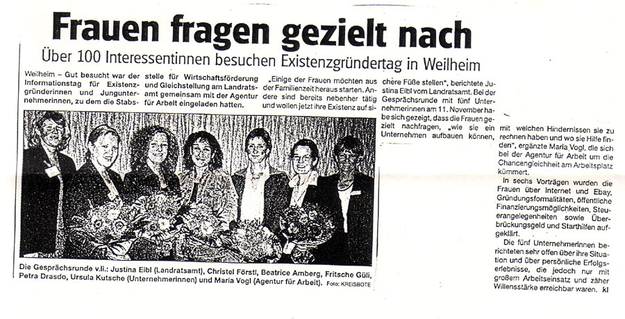 Per Post kamen heute ein Erinnerungsbild und die Presseberichte vom Existenzgründungstag für Frauen in Weilheim.
