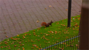 Wo viel Wald - da gibbet natürlich auch allerlei Getier :-): Hier hoppeln täglich posierliche Eichhörnchen auf und ab - leider bis dato nur auf dem Nachbargrundstück.