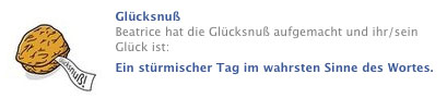 Beatrice 01.04.2011, 09.40| (2/0) Kommentare (RSS) | TB | PL | einsortiert in: gesprudelt | Anekdoten, good vibrations,