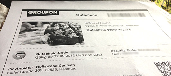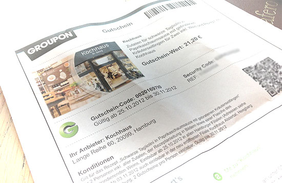 Beatrice 18.10.2012, 19.27| (0/0) Kommentare | TB | PL | einsortiert in: Kochtopf | Groupon, Gutschein, unterwegs, Hamburg, Küche,