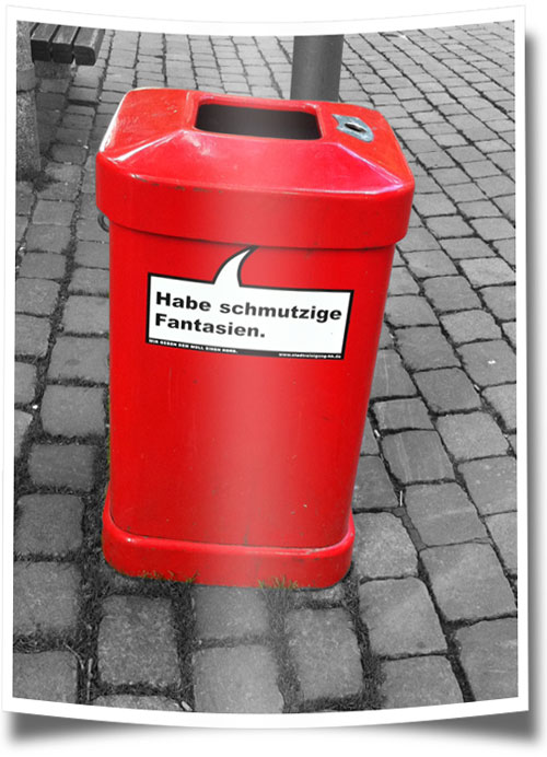 Beatrice 06.09.2011, 12.27| (2/0) Kommentare (RSS) | TB | PL | einsortiert in: Müll-Sprüche | Hamburg, unterwegs, Foto, Mülltonnen,